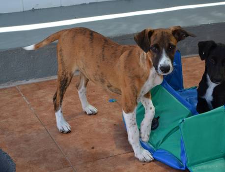 Leider musste mir das linke hintere Bein abgenommen werden. Und das kam so: In Portugal, wo ich herkomme, war ich in eine Falle geraten und hatte höllische Schmerzen. Es kam keiner vorbei, der mir helfen konnte. Ich hatte nur zwei Möglichkeiten: entweder bleibt mein Fuß in der Falle, die aber an einem Baum angekettet war, so dass ich nicht weg konnte und elend verhungert wäre - oder ich helfe mir selbst, aus dieser Falle heraus zu kommen. Ich habe mich für das Leben entschieden und habe vor lauter Verzweiflung meine Pfote, die von der verrosteten Falle schon total entzündet war, abgefressen und konnte mich somit befreien. Ich lief von diesem schrecklichen Ort soweit weg wie ich nur konnte. Mein Bein schmerzte sehr, denn die Entzündung ging jetzt weiter ins Bein. Ich wurde irgendwann von lieben Menschen aufgesammelt. Weglaufen konnte ich nicht mehr, dazu fehlte mir die Kraft. Diese Menschen haben mich ins Tierheim gebracht und dort wurde mir schnell geholfen. Die Entzündung im Bein war aber schon soweit fortgeschritten, dass keine Heilung mehr möglich war. Das Bein musste amputiert werden. Für mich war es die beste Lösung - und ihr glaubt gar nicht, wie schnell ich damit laufen kann! Spielen mit anderen Hunden ist überhaupt kein Problem. Ich habe auch nur eine Schulterhöhe von ca. 45cm und kann mein Gewicht prima auf drei Beinen halten. Ich hoffe, es gibt ganz liebe Menschen die mich auch mit drei Beinen mögen und mir ein richtiges Zuhause geben. Das wäre mein größtes Glück!
