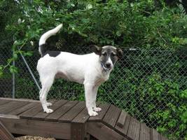 Das fehlende Hinterbein ist überhaupt kein Problem, er hat bisher jede Distanz beim Spazieren geschafft und springt mit allen drei Beinen in die Luft, wenn es um Leckerlis geht. Captain ist fast genau so schnell wie Minna, - was nicht jeder Hund von sich behaupten kann. Er spielt gerne, er lässt sich immer besser clickern (Pfote geben, Hüpfen, Platz), er ist super verschmust - das kann er stundenlang haben. Er ist teilweise noch etwas unsicher, aber auch aufmerksam. Im Wald ist er lieber als im Feld. Ich gehe davon aus, dass Captain in einer neuen Umgebung auch, wie bei mir, zwei bis drei Wochen Eingewöhnung braucht, um anzukommen. Aber dann ist er ein toller Kumpel und sehr aktiv und lernbegierig. Nur zum Schmusen und Miniauslauf würde ich ihn nicht empfehlen, er geht gerne eine lange Runde. Wird die Leine zu kurz, bleibt er stehen, von sich aus. Er passt sich gut und letztlich schnell an eine neue Umgebung an. Wenn man bedenkt, wie wohl sein früheres Leben gewesen ist, sind seine Verhaltensweisen nachvollziehbar. Er hat wohl Mäuse gefangen und in Müllhaufen gestöbert, jetzt kennt er seine Futterzeiten genau und es scheint, als wisse er sie zu schätzen. Von der Katze meiner Nachbarin ist er genauso angetan wie Minna. Auf fremde Hunde reagiert er interessiert, aber vorsichtig.“ Also, besser geht es doch fast gar nicht! Wer möchte mich, den tollen Captain, kennen und lieben lernen?