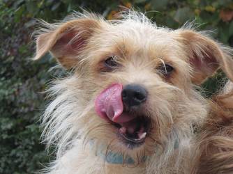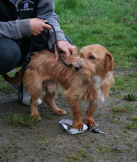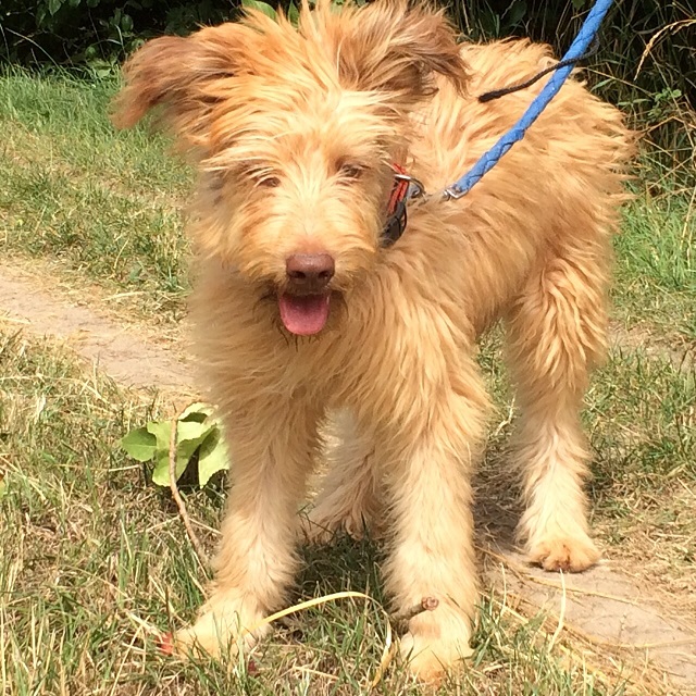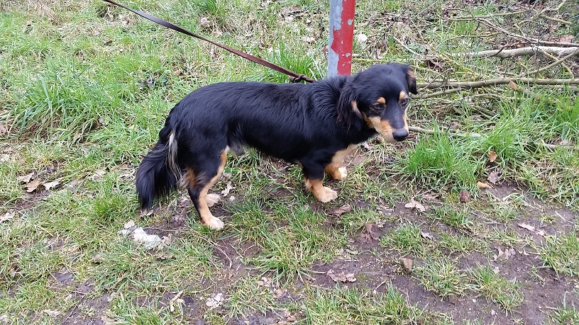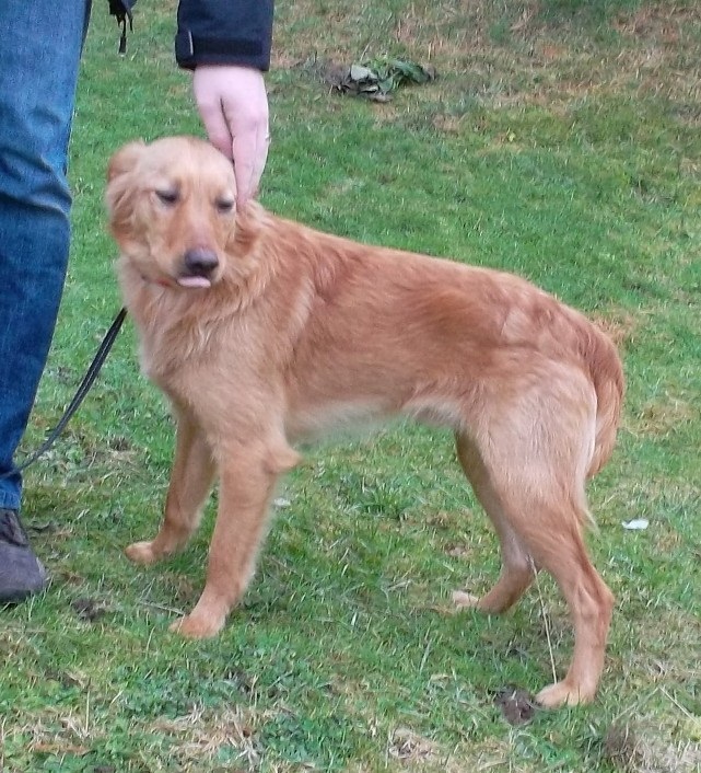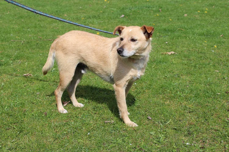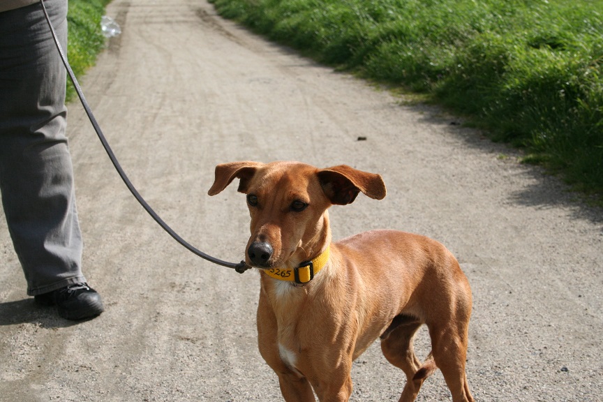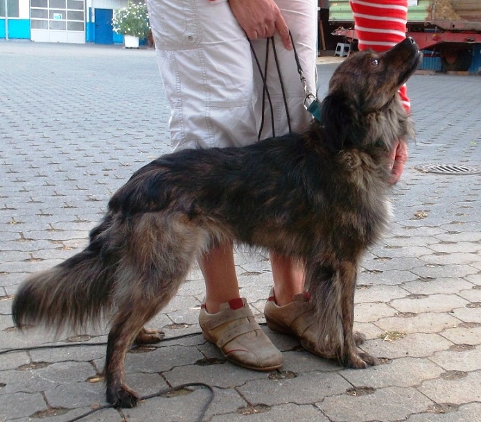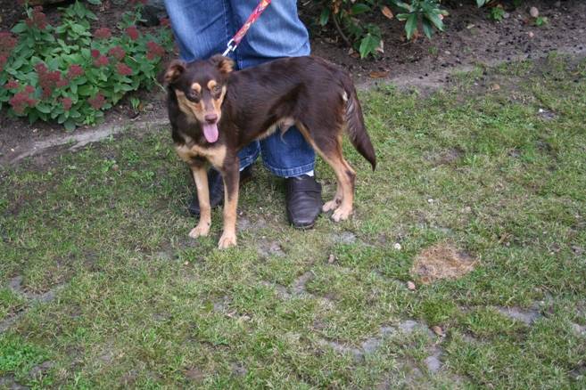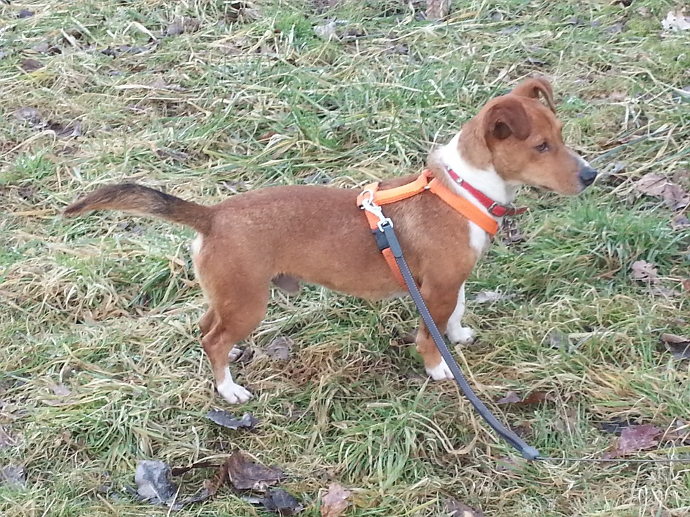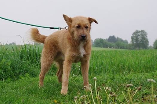 Er ist seinem Aussehen nach ein Mischling der Rasse „Basset fauve de Bretagne“, geb. 08/2011 und ca. 35 cm hoch. In Ungarn wurde er auf der Straße gefunden – woher er kam und wie er vorher lebte, ist nicht bekannt. In der dortigen Tierschutz-Station zeigte er sich sofort als netter, zurückhaltender Hund, und war stets freundlich mit allen Menschen, Hunden und Katzen. Hier in Deutschland lebt er derzeit ohne weitere Tiere als Pflegehund bei einer jungen Frau in einer Stadtwohnung. Er zeigt sich weiterhin als sehr freundlicher, verschmuster junger Bursche, der mit seinem Charme jeden um die Pfote wickelt. Inzwischen ist er sehr aufgeschlossen, freut sich über jeden Menschen, den er trifft, er ist lebhaft, verspielt und zeigt seine Lebensfreude mitunter auch recht stürmisch! Das junge Energiebündelchen braucht ausreichend Auslauf und Beschäftigung, er ist gerne mit seinem Menschen draußen unterwegs und geht sehr gerne schwimmen. Drinnen klappt alles soweit prima, er ist inzwischen stubenrein und lernt gerade das Alleinebleiben,zwei Stunden kann er das schon sehr gut.