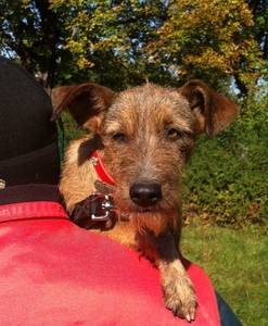 Hier stellen wir Ihnen unseren charmanten kleinen FRODO vor. Er ist ein Australian Terrier und ein kleiner Charmeur! Mit seinen 26 cm Schulterhöhe und zarten 4 kg ist er wirklich ein Zwerg. Geboren ist er am 11.12.2008. FRODO wird derzeit von der Dame betreut, die den Hundesalon leitet, in dem unsere Schützlinge, wenn nötig, nach ihrer Ankunft erst einmal ordentlich hergerichtet werden. FRODO läuft im Salon herum, als wäre ER der Chef und freut sich über alle Kunden, die da kommen – er meint ja, jeder kommt seinetwegen! Leider hat sich auf diesem Wege bisher noch kein Endplatz für ihn gefunden, daher müssen wir hier nochmal kräftig Werbung für den kleinen Kerl machen. Er ist lieb und schmusig, aber auch selbstbewusst. Er mag Menschen und versteht sich bisher mit allen Hunden. Im Auto fährt er prima mit. Alleine bleiben kann er – bisher zusammen mit anderen Hunden – auch. Natürlich ist FRODO auch kastriert, geimpft, gechipt und entwurmt. Wer gibt unserem kleinen Burschen ein Zuhause?