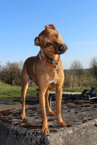 Sandro ist ein lieber, sportlicher, jedoch anfangs sehr schüchterner Hund, der in seinem bisherigen Leben nicht nur gute Erfahrung mit Menschen gemacht hat. Bei unbekannten Personen, Hunden oder auch für ihn unbekannten Situationen geht er lieber einen Schritt zurück, reagiert aber niemals mit Aggression. Nach 3 Tagen auf der Pflegestelle hatten wir sein vollstes Vertrauen und er weicht uns gar nicht mehr von der Seite, streckt uns seinen Bauch zum Streicheln entgegen und man merkt, wie glücklich er für jede Zuwendung ist. An der Leine läuft Sandro vorbildlich, sobald etwas Zug auf die Leine kommt, geht er direkt hinter seinen Menschen. Derzeit befindet sich Sandro in der Betreuung der Hundefreunde, dort kommt er prima mit allen Hunden zurecht.