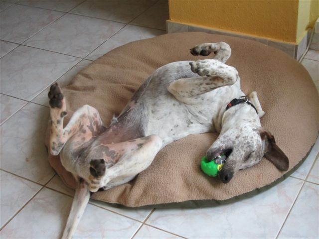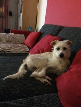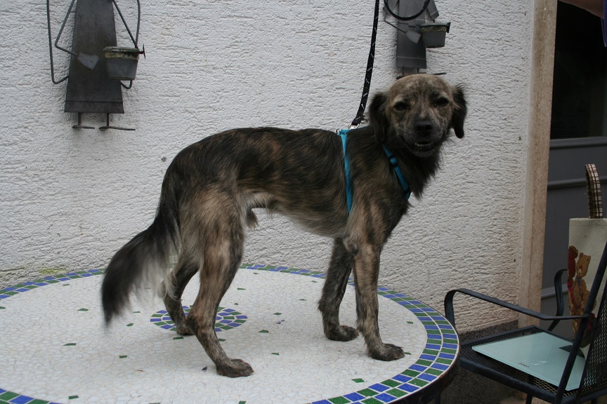 Als ich noch jünger war, habe ich mir den linken Oberschenkel gebrochen und da sich in Portugal niemand um mich gekümmert hat, ist das ganze wieder schief zusammen gewachsen. Dadurch ist mein linkes Hinterbein ein wenig kürzer geraten als das rechte und hat mein Gangbild etwas verändert. Doch das stört mich überhaupt nicht, da ich keine Schmerzen habe und alles tun kann, was andere Hunde auch tun. Was mir nun zu meinen Glück noch fehlt, ist ein liebvolles Zuhause auf lebenszeit mit verantwortungsvollem Kuschelpersonal, bei dem ich endlich zur Ruhe komme und das mich nimmt wie ich bin.