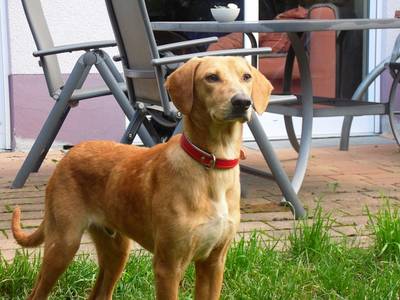 Mein Name ist Julius, ich bin geboren am 10.07.2010 und ein unheimlich lieber Zeitgenosse. Ich bin kastriert und ein Pointer-Mischling. Mittlerweile bin ich voll geimpft, entwurmt, gechipt und negativ auf Mittelmeer-Krankheiten getestet. Nach langer Leidensgeschichte durfte ich im Januar 2012 endlich nach Deutschland umziehen, wo ich seitdem in einer sehr lieben Pflegefamilie lebe, die mir schon vieles beigebracht hat. Ich bin sehr kinderlieb, verstehe mich super mit anderen Hunden, bin stubenrein und gut leinengängig, fahre gelassen Auto und bin auch sonst ein sehr umgänglicher, freundlicher Hund.