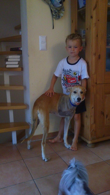 Luca versteht sich prima mit anderen Hunden, ist katzenverträglich und kinderlieb.