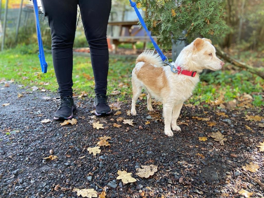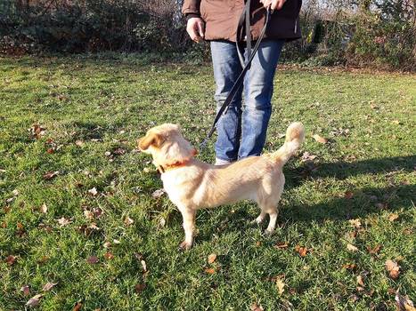 Draußen stöbere ich neugierig umher und kann auch richtig aufdrehen. Außerdem lerne ich voller Begeisterung und Elan als fleißiger Schüler das kleine Hundeeinmaleins. Befehle, die ich einmal gelernt habe, zeige ich gerne bereitwillig gegen einen leckeren Keks oder eine Streicheleinheit.