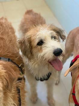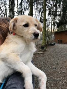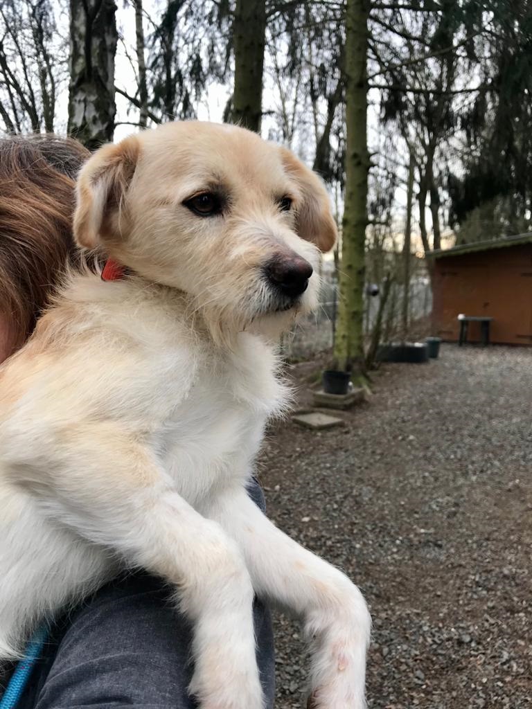 Raposo lebt seit einiger Zeit auf einer Pflegestelle und er entwickelt sich fantastisch. Er ist ein freundlicher, sehr menschenbezogener kleiner Rüde. Anfangs ist er neuen Menschen gegenüber etwas schüchtern, aber das legt sich schnell. Leider ist Raposo auf einem Auge blind und sieht auf dem anderen auch nicht mehr allzu viel. Das schränkt ihm im Alltag wenig ein und im Wald und auf dem Feld fällt es kaum auf. Aber durch sein geringes Sehvermögen ist er schreckhaft bei plötzlichen lauten Geräuschen und ist im Straßenverkehr unsicher. Auf der Pflegestelle hat er sich schon gut an den Verkehr gewöhnt, aber er würde lieber in ein Zuhause ziehen, dass nicht an einer Hauptverkehrsstraße liegt. Er versteht sich sehr gut mit der Hündin der Pflegestelle und orientiert sich an ihr. Das hilft ihm in gruseligen Situationen weiter. Über einen sicheren Hund in seiner neuen Familie würde er sich bestimmt freuen. Mit Katzen versteht er sich auch super und etwas ältere Kinder wären auch kein Problem. Sobald er sich eingewöhnt hat, ist er ein aufgeweckter, aktiver Hund, der sich gerne mit seinen Menschen beschäftigt und sehr gerne spazieren geht. Er ist jagdlich interessiert (hauptsächlich bei Rehen), aber er bleibt ansprechbar und mit weiterem Training bekommt man das sicherlich schnell in den Griff. Auf der Pflegestelle ist er stubenrein und macht große Fortschritte beim Alleine bleiben.
