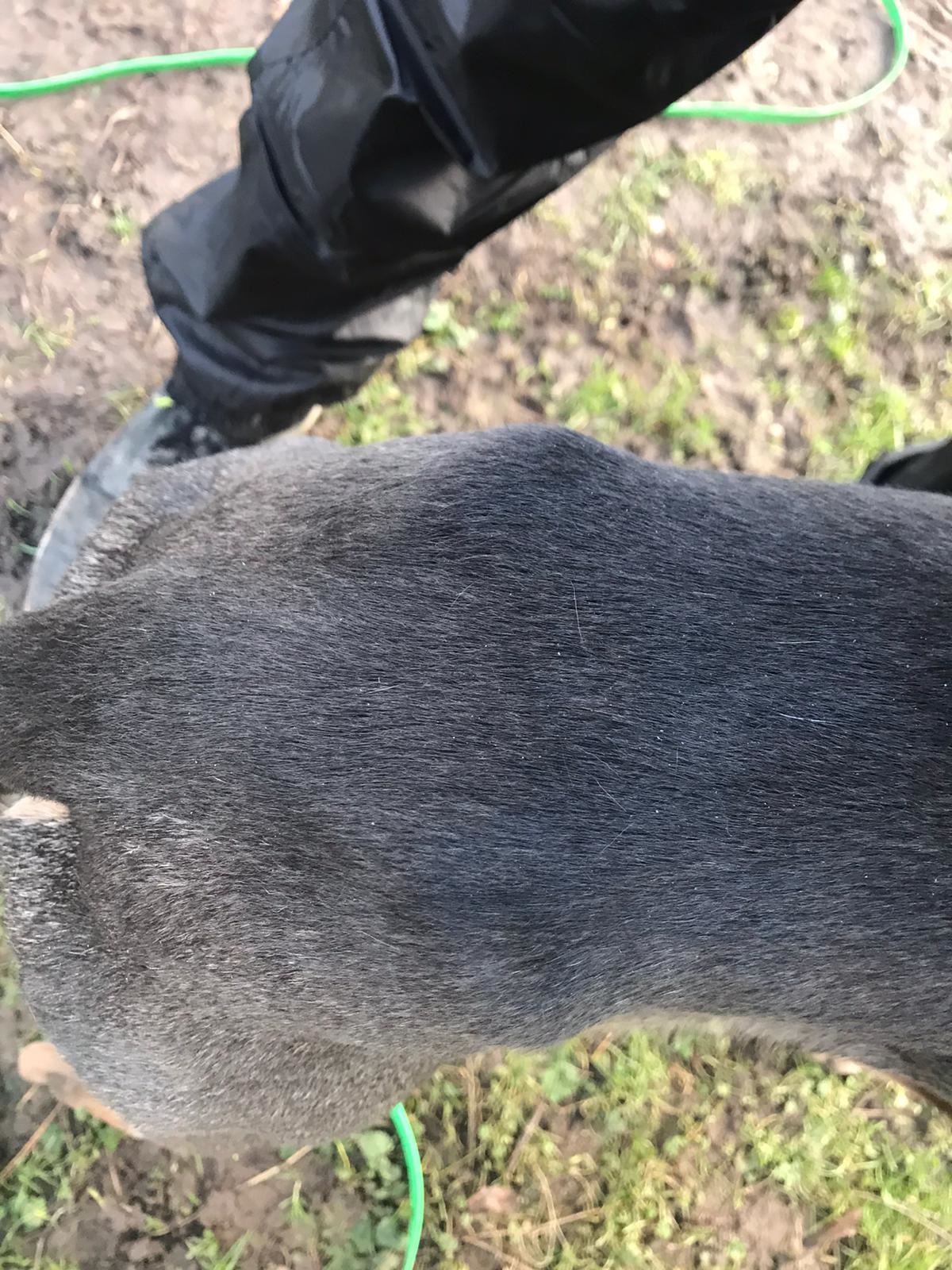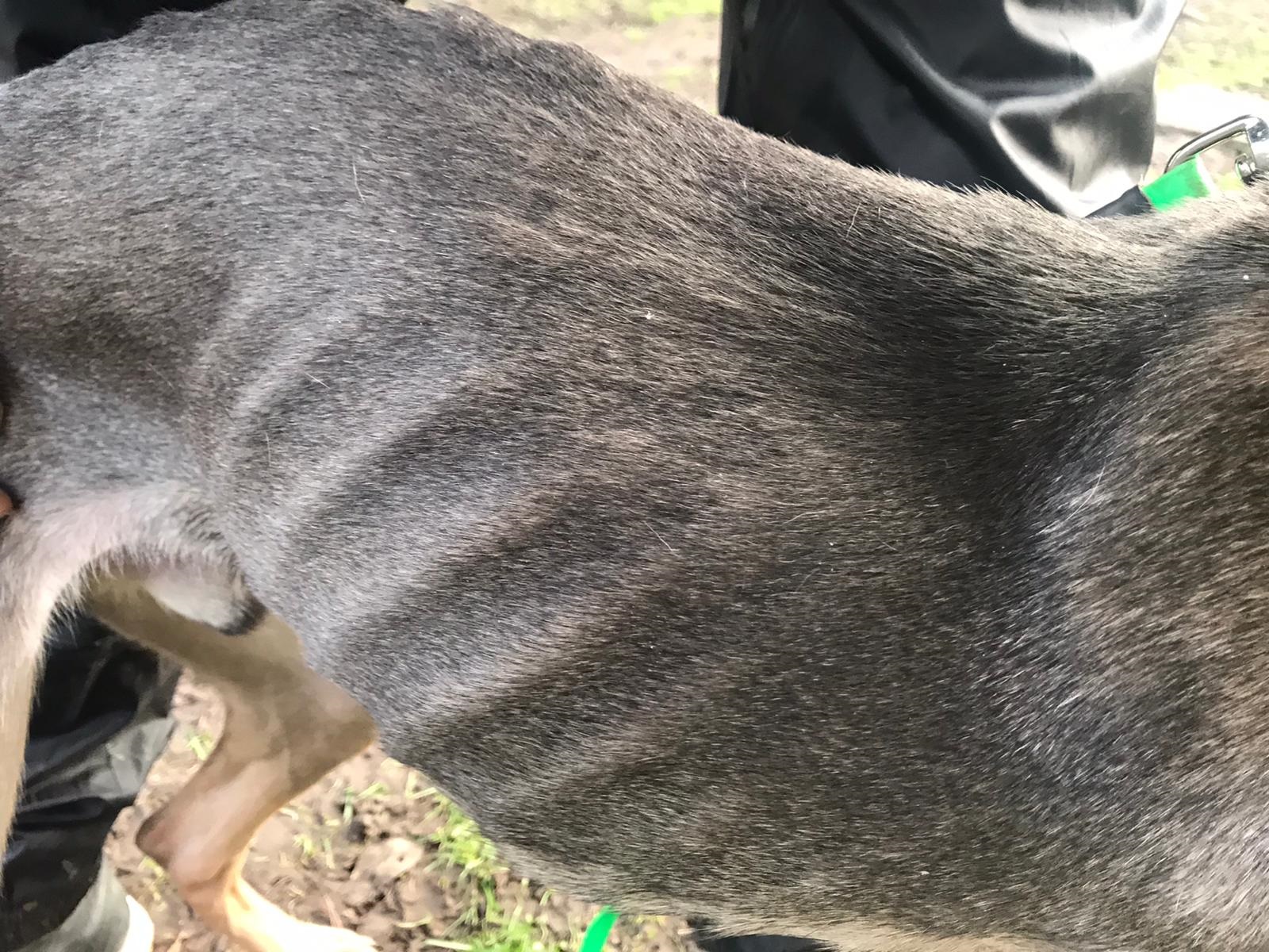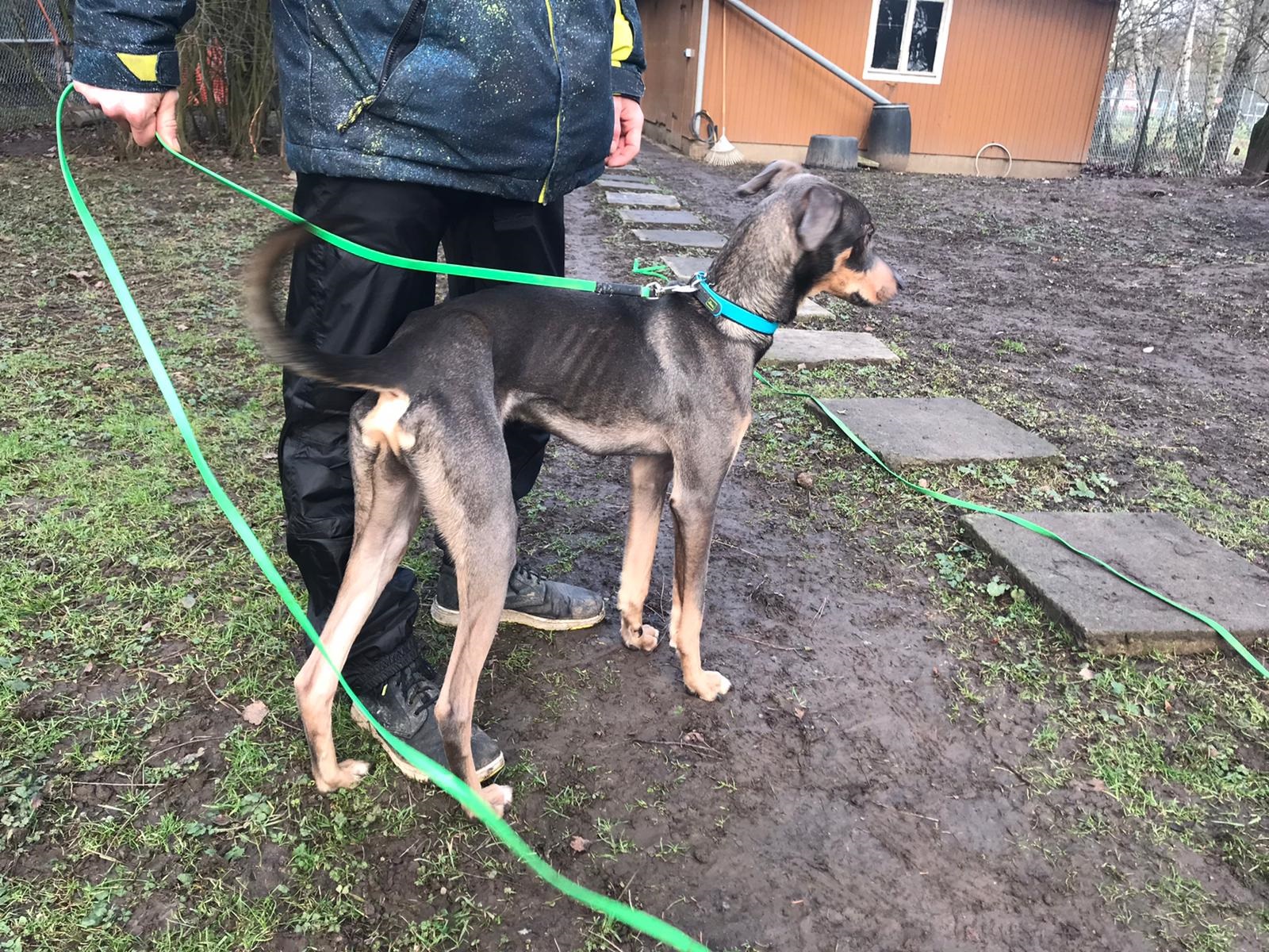 Ein Termin wurde für Mitte Januar stand - Duke kam zurück. Als wir ihn sahen, verschlug es uns die Sprache. Duke war auf Haut und Knochen abgemagert. Mit 4 Monaten wurde er mit einer Schulterhöhe von 49cm und 14,1 Kilo vermittelt; zu uns zurück kam er mit einer Schulterhöhe von 60cm und 14,6 Kilo.