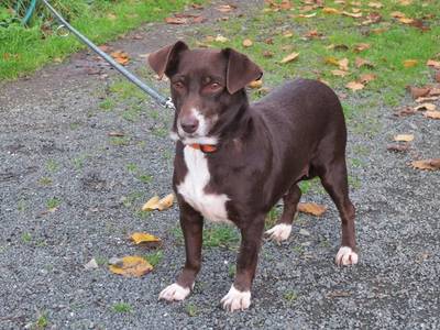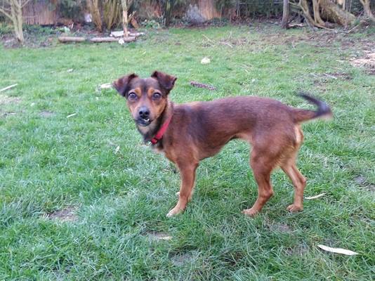 Lustig und freundlich. Das ist unser Schnutchen. Sie ist eine dunkelbraune Mischlingshündin mit weißem Brustfleck, geboren 10.12.2014, 31 cm „groß“ und wiegt 5,5 kg. Sie hat eine Topfigur, besteht fast nur aus Muskeln. Sie hat wunderschöne ganz große dunkle runde Augen und süße Klappöhrchen. Ihr Fell ist ganz kurz und zart, also sehr pflegeleicht. Schnutchen hat einen Unterbiss, was ihr ihren Namen eingebracht hat. Sie ist superlieb, liebt es zu spielen und im Garten zu toben, genießt aber auch sehr das Schmusen mit dem Pflegefrauchen. Schnutchen ist sehr menschenbezogen und freut sich über jeden der die Tür rein kommt. Sie verträgt sich gut mit anderen Hunden und auch mit Katzen und hört auch gut. Im Auto fährt sie ganz brav mit. Im Haus verhält sie sich sehr brav und sie ist stubenrein. Wenn man sie anspricht wird direkt wild gewedelt. Schnutchen ist eine äußerst schöne Hündin. Und der Unterbiss verleiht ihr sogar das gewisse Extra. Rufen sie an um diese Hündin persönlich kennen zu lernen. Denn Schnutchen wünscht sich sehr eine eigene Familie.