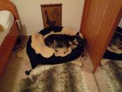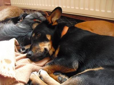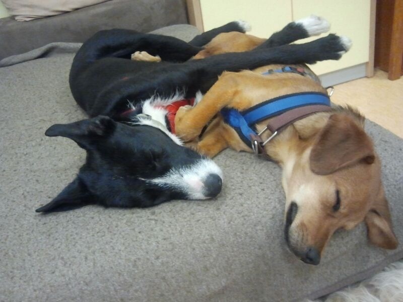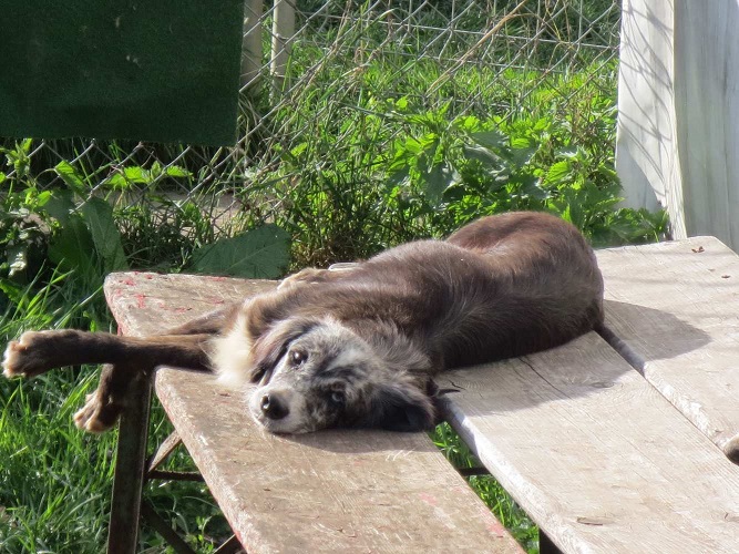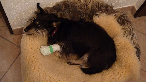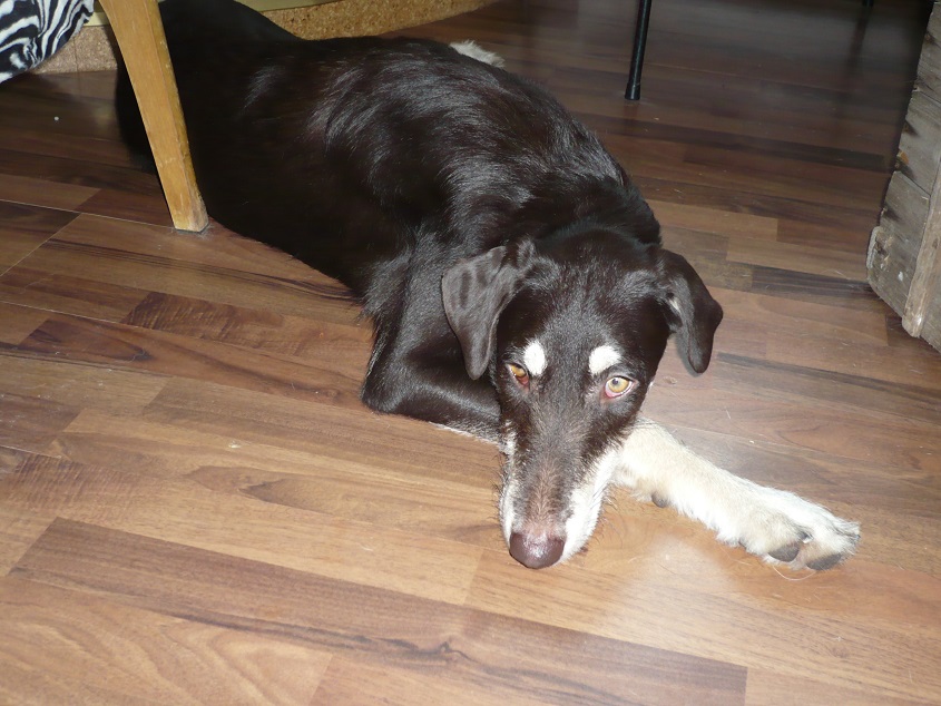 Selbst für kürzere Zeit ohne andere Hunde alleine bleiben kann Tamira schon. Sie jammert nicht dabei und macht auch nichts kaputt.