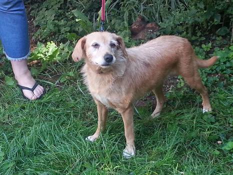 Unsere Betti ist einfach ein klasse Hund. Sie ist leider etwas unscheinbar und ihr wahres ich kommt leider auf den Bilder nicht so toll rüber. Wenn man Betti aber mal persönlich kennenlernen durfte ich man Feuer und Flamme für sie und möchte sie gar nicht mehr hergeben. Wir hoffen sehr das es bald Interessenten gibt die Betti die Chance zum persönlichen kennenlernen geben werden. Sie würden es bestimmt nicht bereuen. Sie ist freundlich und offen für alles und jeden. Sie ist superlieb, verspielt, verschmust und immer gut drauf. Sie versteht sich prima mit anderen Hunden, ist katzenverträglich und auch kinderlieb. Geboren ist Betti 02/2011 und hat eine Schulterhöhe von ca. 35,0 cm.