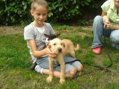 Sie ist ein Mischling, wurde am 26.07.2015 geboren, wiegt 10 Kilo und ist 45cm groß.Sie ist eine superliebe Hündin, die sich mit allem und jedem verträgt.Sie ist absolut kinderlieb, verträgt sich gut mit anderen Hunden und auch mit Katzen.Altersgemäß ist sie verspielt - da hat sie eine Riesenfreude dran!Und eine Schmusemaus ist sie - Kuschelfaktor garantiert! Ruft an und lernt sie persönlich kennen - es lohnt sich unbedingt.