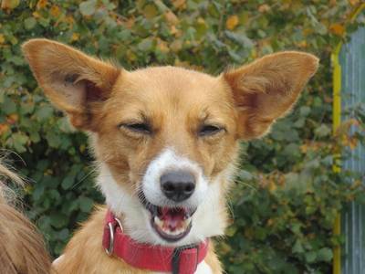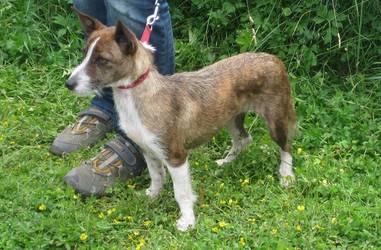 Fara ist eine noch etwas schüterne Mischlingshündin, die auf dem Foto aussieht wie eine ganz Große. Umso überraschter ist man, wenn eine zierliche Maus von knapp 42cm plötzlich um einen herumhüpft.