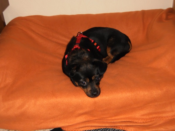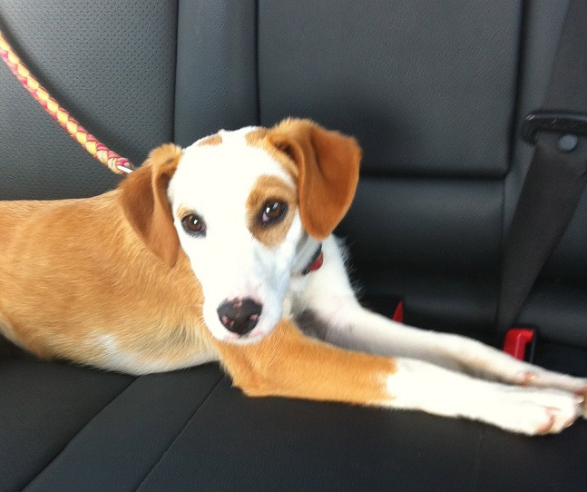 sie ist stubenrein, bleibt schon alleine zu Hause und fährt auch schon ganz brav im Auto mit.