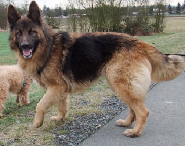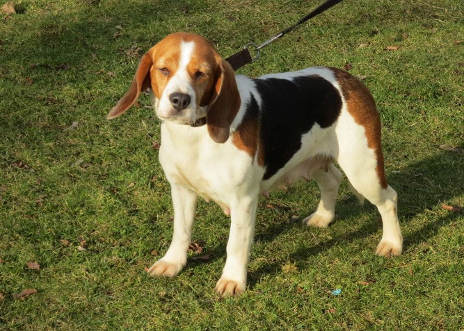 Bei ca. 35 cm Schulterhöhe wiegt sie ca. 15 kg.