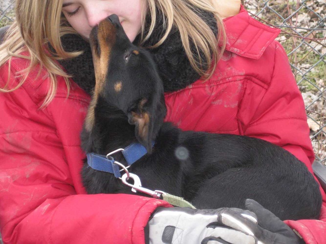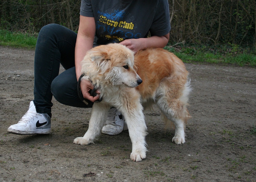 Sie wurde vor dem Tierheim ausgesetzt. Zusammen mit einem Sack Futter auf dem stand wie sie heißt und wie alt sie ist.