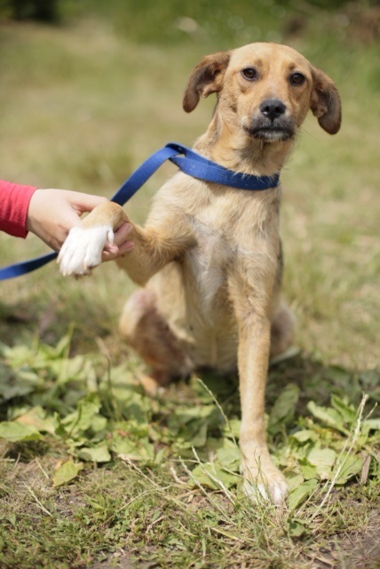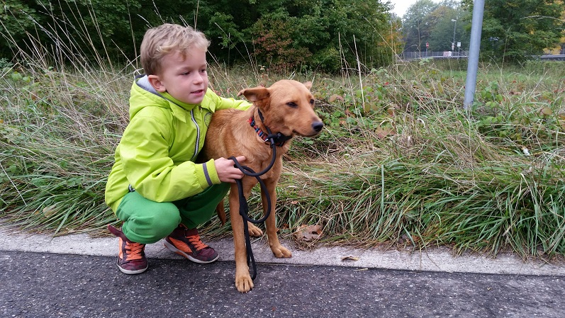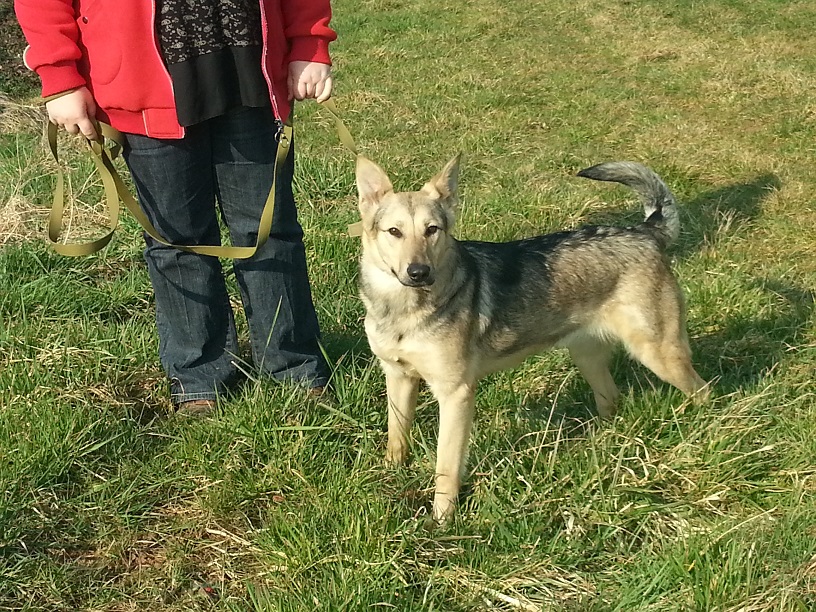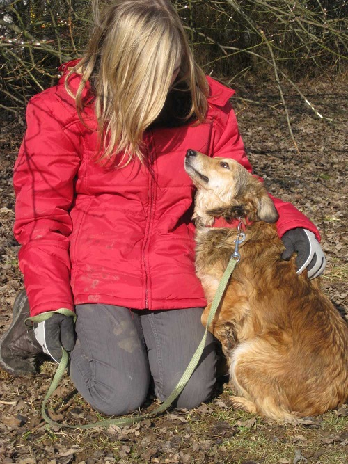Sie geht freundlich auf Menschen zu und versteht sich bisher mit allen Hunden.