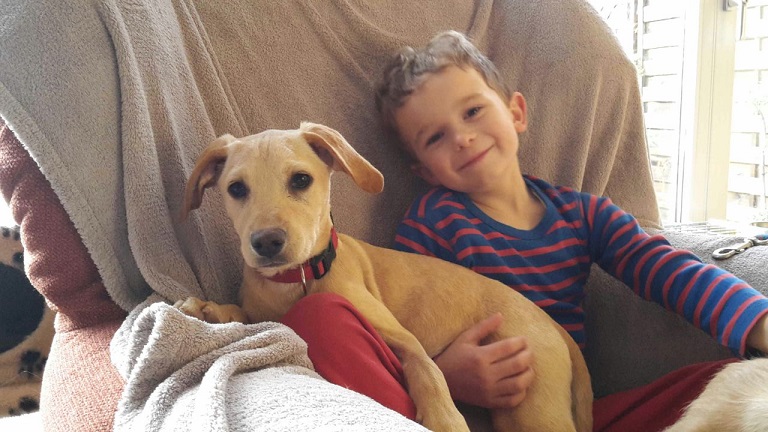 Biene ist total vernarrt in Kinder und verträgt sich gut mit anderen Hunden - mit Katzen ebenso.