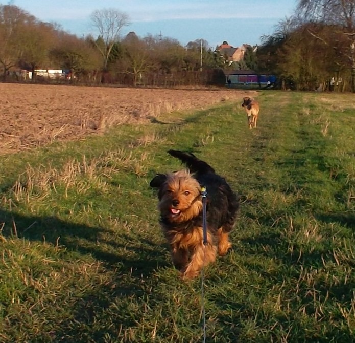 Sie geht noch nicht so gut an der Leine und ist noch nicht ganz stubenrein.
