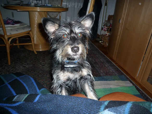 Nigra ist am 11.11.2011 geboren und ist zurzeit 45cm groß. Ihr seidigweiches, silbernes Fell läßt darauf schließen, dass bei ihr ein Schnauzer mitgemischt hat. Sie ist ein fahrer Schatz, Fremden gegenüber anfangs etwas schüchtern, aber ihre Pflegefamilie liebt sie bereits über alles!